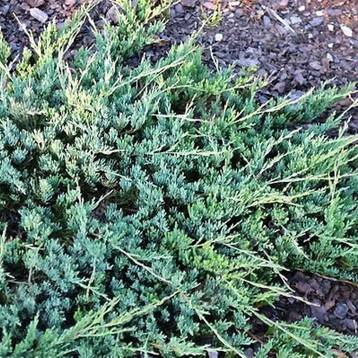 Ветви нижние стелются по земле, верхние изящно дугообразны изогнуты и ложатся на нижние, создавая эффект волн непослушной реки. Очень популярный стелющийся сорт голубого цвета. Это долговечное растение — будет украшать сад на протяжении 30–50 лет. .Хвоя чешуйчатая, мягкая, зимой с пурпурным оттенком.