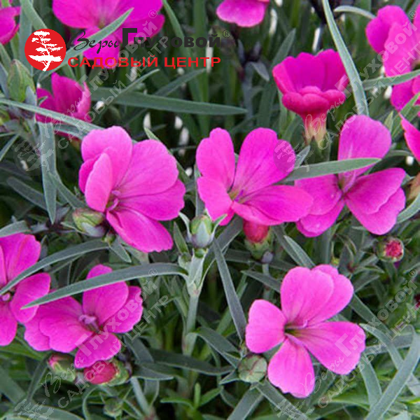 Красивый компактный сорт гвоздики высотой до 20 см с сизоватой листвой и бордово-фиолетовыми цветками. Листья образует плотную подушку, декоративную в течение всего сезона. Цветение с июня по июль.