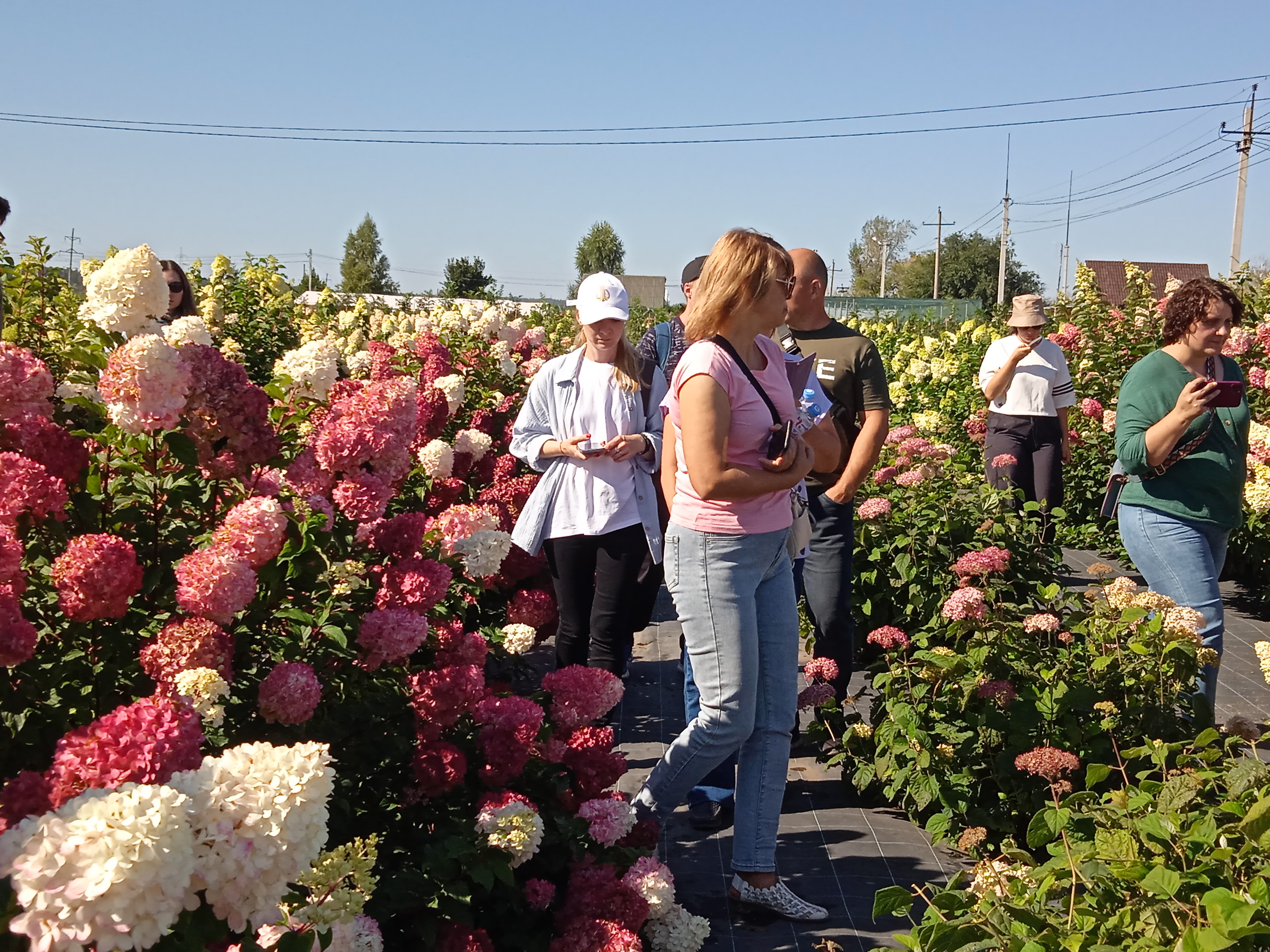 Экскурсию по Садовому центру провела его основатель Вера Викторовна Глухова. В программу профессионального «зелёного» тура также вошло посещение парка и полей гортензий, производственного цеха.