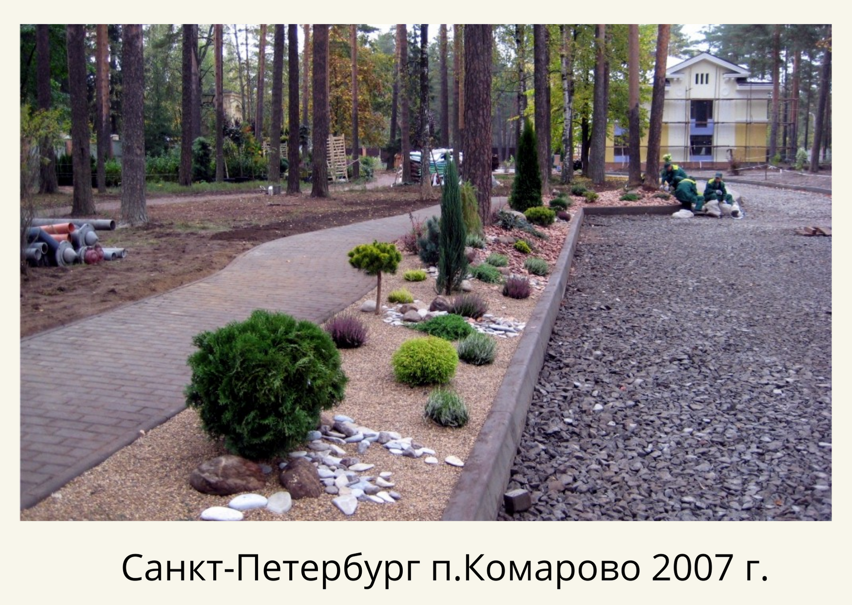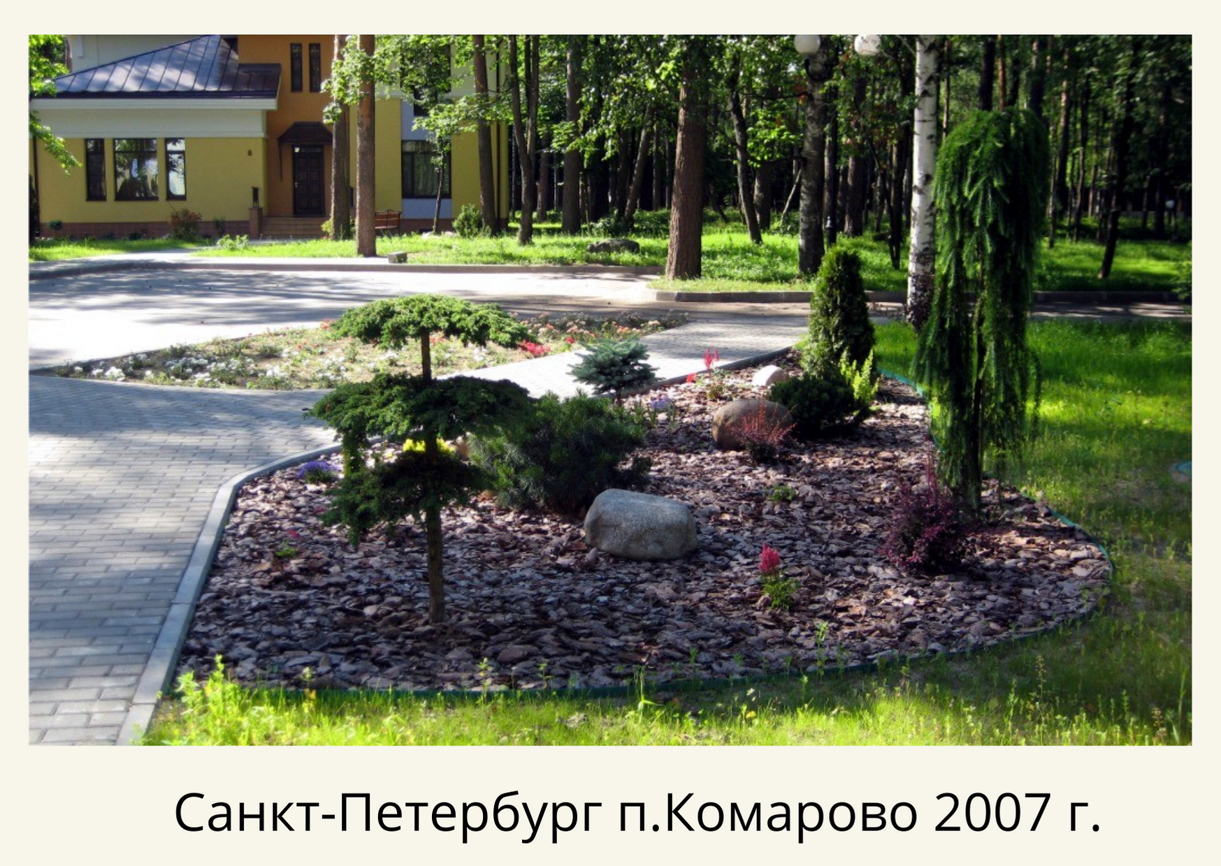 Уникальность существующей природы, ее вековое великолепие предполагало ландшафтное оформление разнообразно, но со вкусом. Приятно, что заказчик доверился нашему профессиональному мнению и принял изменения в проект, которые мы предложили. При создании декоративных композиций мы использовали большое разнообразие хвойных и лиственных растений из 3-х питомников Германии и Бельгии. Эксклюзивные сорта, оригинальные формы (босаи, штамбовые, формованные), красиво цветущие кустарники, разнообразие лиственных деревьев и стало «изюминкой» и лаконичным дополнением к существующим насаждениям. Следствием преобладания посадок хвойников, вересков, рододендронов и азалий явилось применение в качестве отсыпки коры сосновой, которая хорошо вписывается в данную природную композицию. И является незаменимым материалом при мульчировании, соответственным повышением жизнедеятельности растений, сокращением времени потраченного на уход и улучшением эстетического вида композиций.
